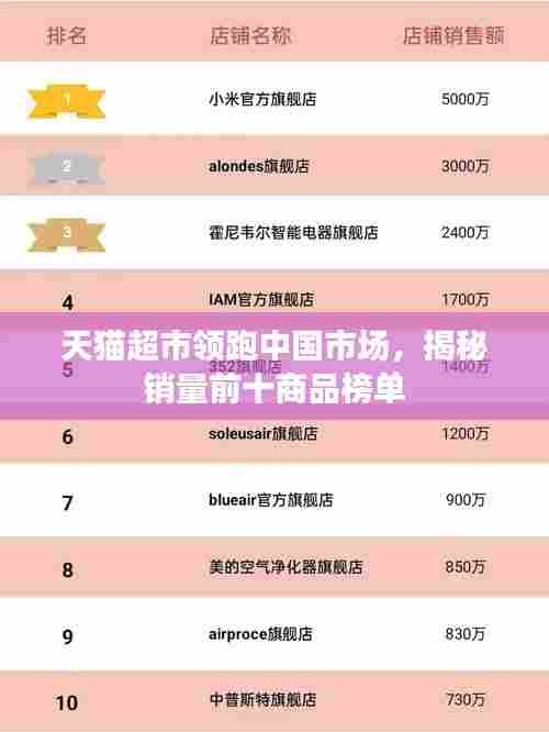 随着电子商务的飞速发展,线上购物已经成为人们日常生活的一部分,在众多电商平台中,天猫超市以其丰富的商品种类、优质的服务和便捷的购物体验赢得了消费者的广泛好评,本文将为您详细介绍天猫超市中的排名前十的商品,带您了解这些深受消费者喜爱的商品背后的故事。